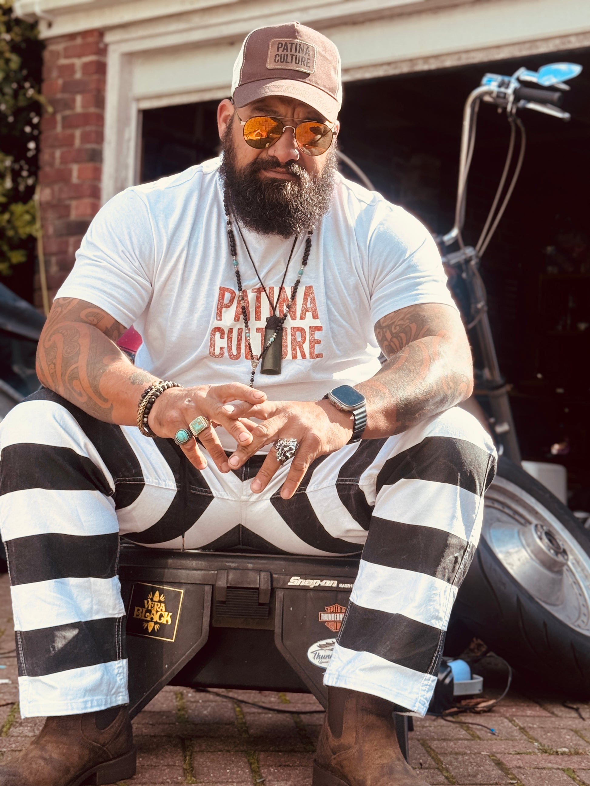 Bright white heavyweight cotton. Hand-pulled Patina Culture logo in our signature rust.Wears in like your oldest band tee, but without the beer stains — for now.Short run. When it’s gone, I’ll reprint when I get round to it — if I get round to it.